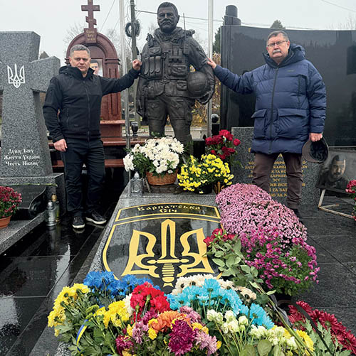 15 листопада, напередодні 60-ліття сл. п. Олега Куцина, у Києві на Байковому кладовищі ветерани “Карпатської Січі” встановили пам’ятник своєму командирові. Відкриття було урочистим і теплим. Із Закарпаття та Прикарпаття приїхали батько Іван, Олегові діти Олеся і Тарас. Провадив зібранням Володимир Гапун-“Русин”, заступник командира ОДЧ “Карпатська Січ”. Співали народна артистка України Світлана Мирвода та Юрко Юрченко-“Юркеш”. Промовляли Іван Куцин, Денис Дориченко-“Віскі” (ініціатор створення пам’ятника), офіцер ЗСУ Томаш Лелекач та ветеран “Карпатської Січі” Володимир Лоїш-“Грім”. “Олег створив «Карпатську Січ» – добровольчу формацію, яка визнавала лише Україну і боротьбу за її волю, – сказав Роман Коваль. – Тарас Компаніченко, який ось тут проводжав Олега в останню дорогу, у серпні 2022 р. написав такі рядки: Минув їх пекла анклав й Харонові переправи, Бо стали у славі до лав безсмертної лави й батави. Проте, як питають мене: чи я в собі зміни бачу? Як стріну по зброї братів живими – з радості плачу. Коли ви читатимете книгу «Хоробре серце Олега Куцина», оживуть його брати по зброї – «Бізон», «Мисливець», «Татарин», «Музикант», Діана Савіта Вагнер-«Снейк», Томаш «Спарта»... Оживе і їхній отаман Олег Куцин. Читача чекає зустріч із ним. Олег своєї місії ще не скінчив – герої служать Батьківщині і після своєї смерті”. А 23 листопада, у його день народження, Олегові друзі – генерал-майор Геннадій Шаповалов і Роман Коваль – поклали квіти на його могилу. А перед тим квіти від командувача Сухопутних сил ЗСУ лягли до пам’ятника Миколі Міхновському, творцеві перших двох полків українського війська навесні 1917 року. Олегові Куцину і Миколі Міхновському слава! Роман КОВАЛЬ, Історичний клуб “Холодний Яр” На світлині – Геннадій Шаповалов і Роман Коваль. Київ, Байкове кладовище, 23 листопада 2025 р.